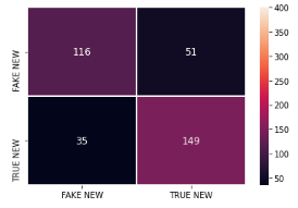 No final, obtivemos um dataset com 1.753 notícias, sendo 808 fakes, simbolizada como classe 0, e 945 verdadeiras, classe 1, com um vocabulário de tamanho 3.698. Com isso, dividimos o nosso dado em conjunto de treino e teste, com tamanhos de 80% e 20%, respectivamente.